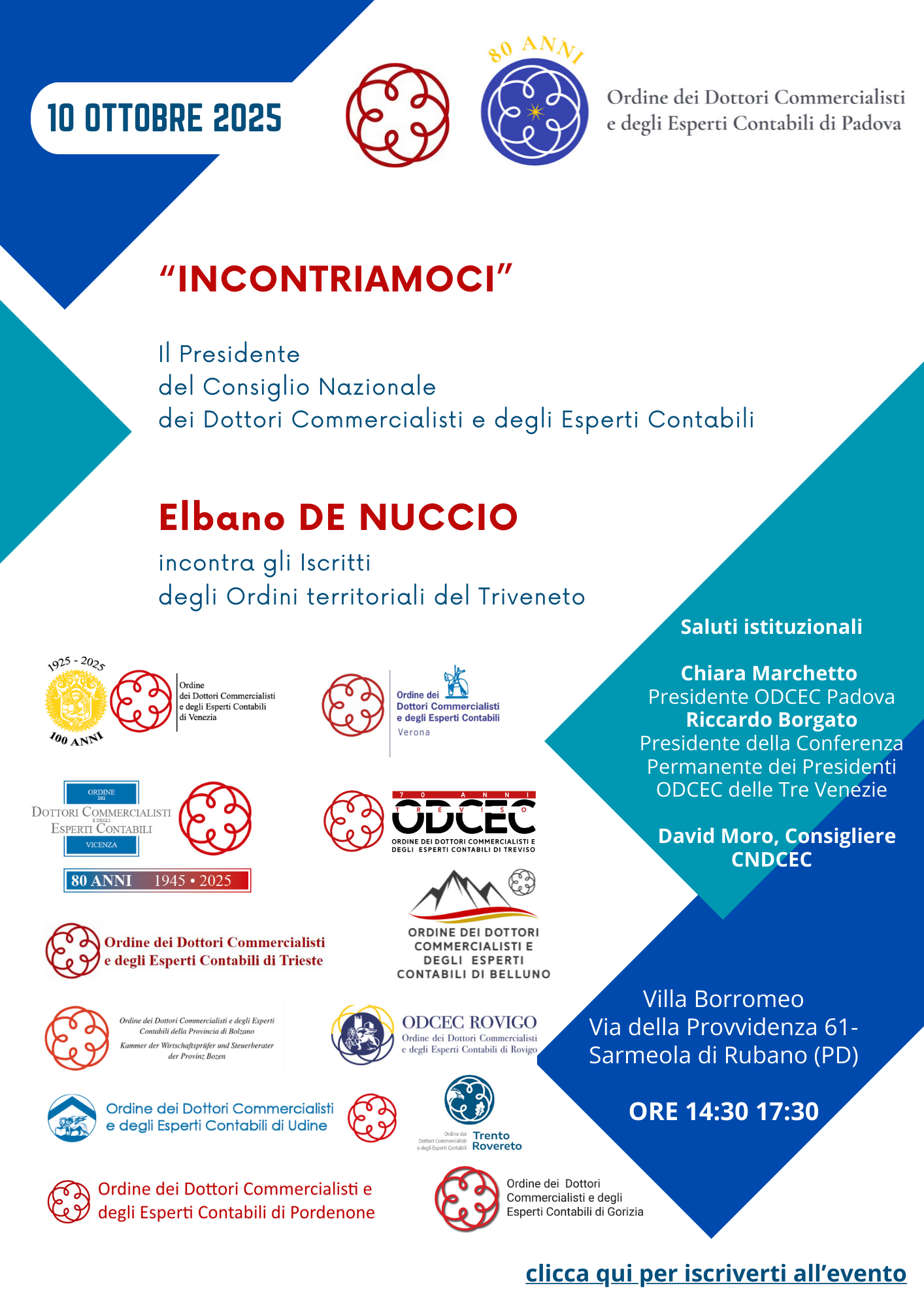 CONVEGNO "INCONTRIAMOCI"IL PRESIDENTE DEL CONSIGLIO NAZIONALE DEI DOTTORI COMMERCIALISTI E DEGLI ESPERTI CONTABILI INCONTRA GLI ISCRITTI DEGLI ORDINI TERRITORIALI DEL TRIVENETO
